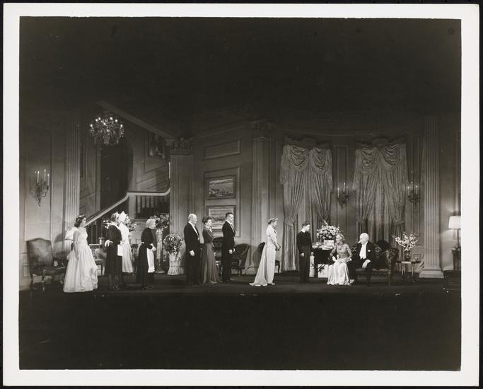 [William LeMassena as William, Alfred Lunt as Thomas Chanler and Lynn Fontanne as Emily Chanler in Act 1 of "I Know My Love".]
