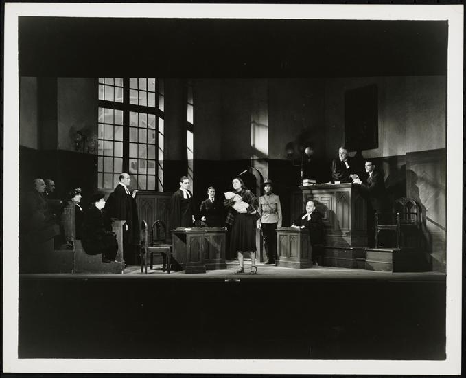 [Helen Craig as Belinda McDonald and Bram Nossen as Att'y General McKnight in "Johnny Belinda".]