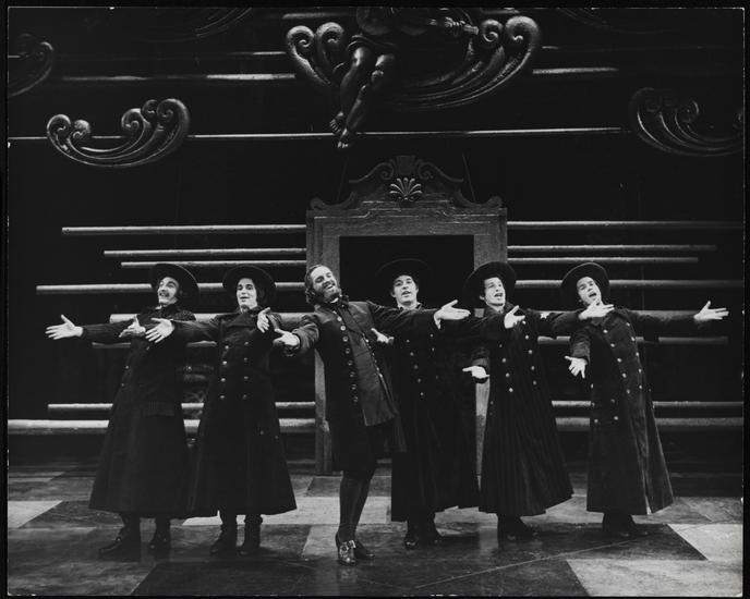 [Leila Martin as Gutele (Mama) Rothschild and Hal Linden as Mayer Rothschild in "The Rothschilds".]