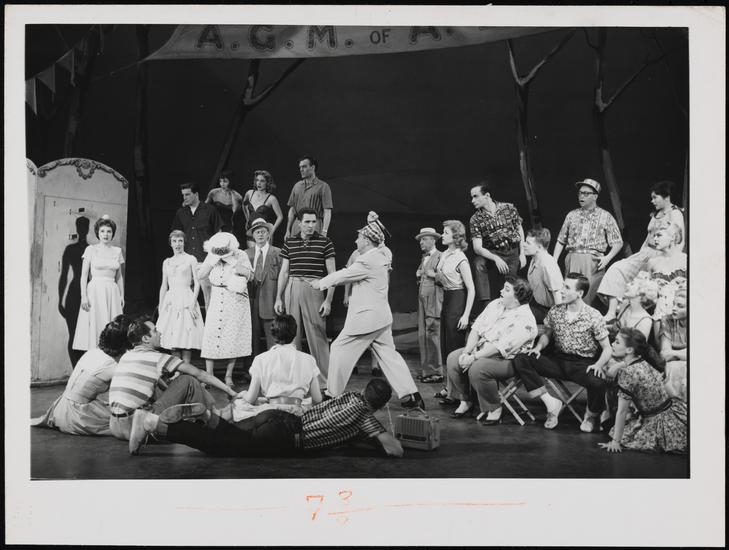 [The "Think of the Time I Save" number in "The Pajama Game".]