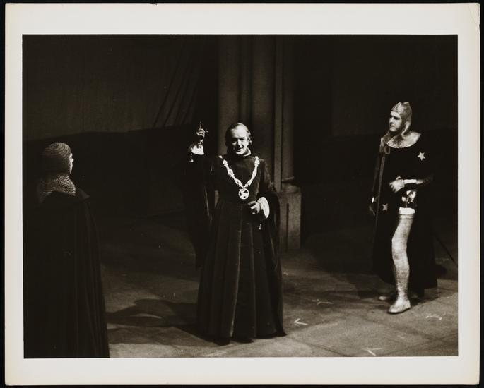 [Maurice Evans as the title role and Carmen Mathews as the Queen in "King Richard II".]