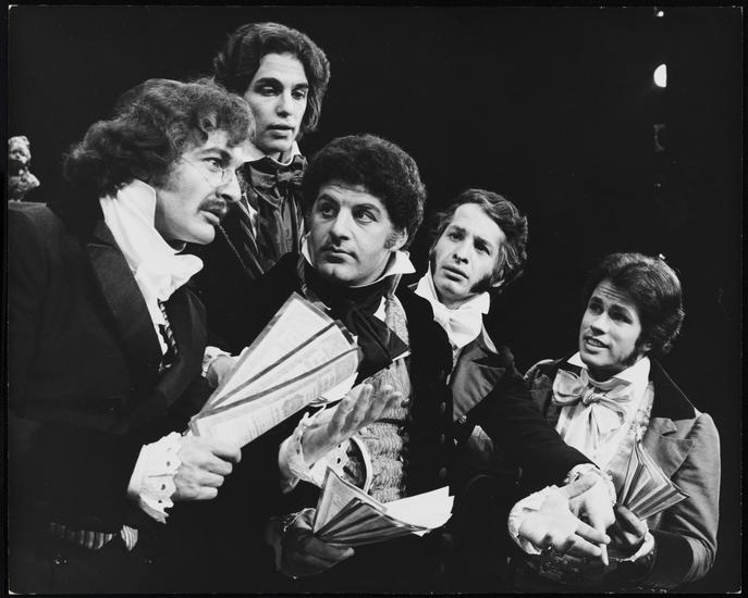 [Leila Martin as Gutele (Mama) Rothschild and Hal Linden as Mayer Rothschild in "The Rothschilds".]