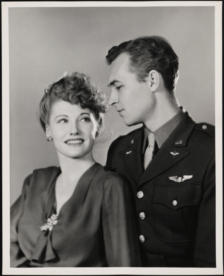 [Margaret Eckman as June Winkle and Ralph Clanton as Lieutenant James Richardson in "Victory Belles".]