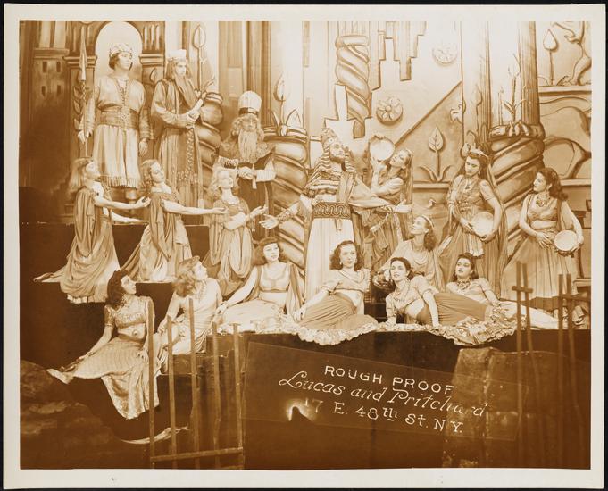 [Possibly part of the cast of "A Flag Is Born".]