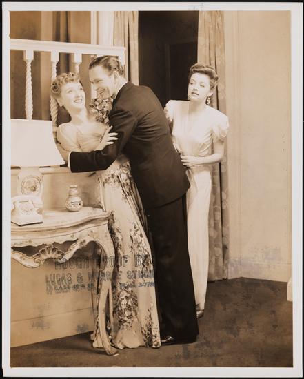 [Betty Furness as Lady Palfrey-Stuart, Otto Hulett as Driscoll "Happy" Felton and Celeste Holm as Lady Keith-Odlyn in "My Fair Ladies".]