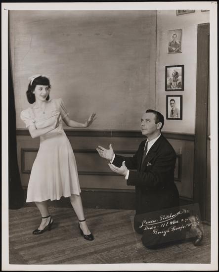 [Nanette Fabray as Jean, Eric Brotherson as Byron Burns, David Burns as Walters and Willie Howard as Barney Short in "My Dear Public".]
