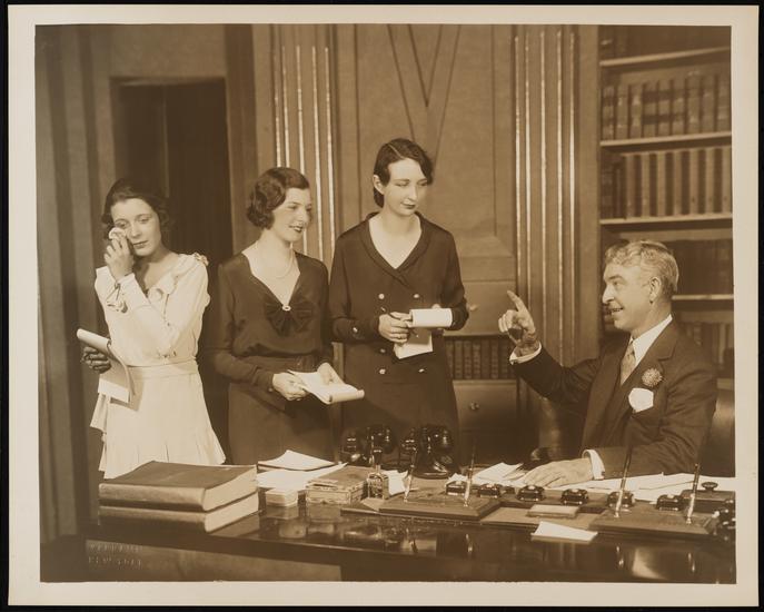 [Fifi Laynee as Miss Lind, Arthur Byron as Nordson, Audray Dale as Lydia and John Williams as Anton Schuh in "One, Two, Three".]