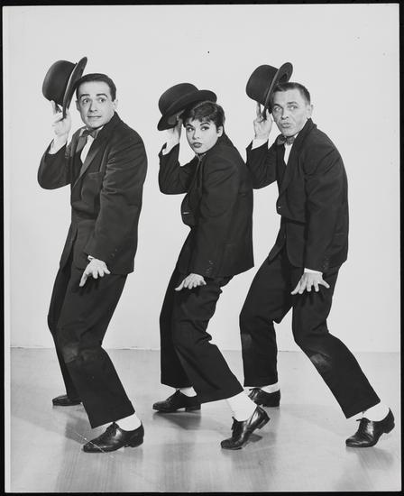 [Jim Hutchison as Eddie, Helen Gallagher as Gladys and Frank Derbas as a Worker in the "Steam Heat" number in "The Pajama Game".]