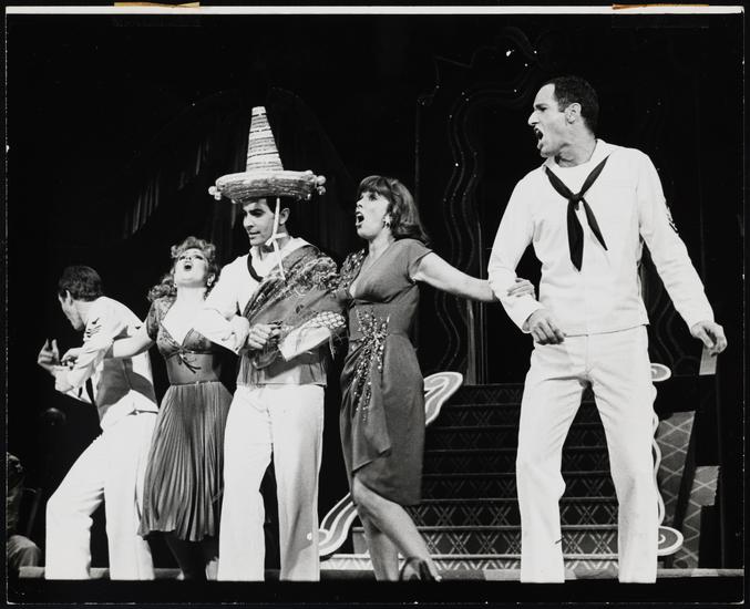 [Ron Husmann as Gabey, Phyllis Newman as Claire DeLoone, Bernadette Peters as Hildy Esterhazy and Jess Richards as Chip in "On the Town".]