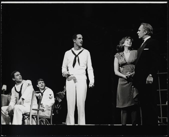 [Ron Husmann as Gabey, Phyllis Newman as Claire DeLoone, Bernadette Peters as Hildy Esterhazy and Jess Richards as Chip in "On the Town".]