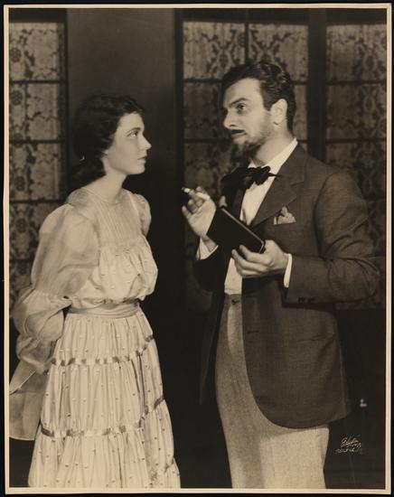 [Egon Brecher as Adam Zappe, Improvisator and Josephine Hutchinson as Olga in "Improvisations in June".]