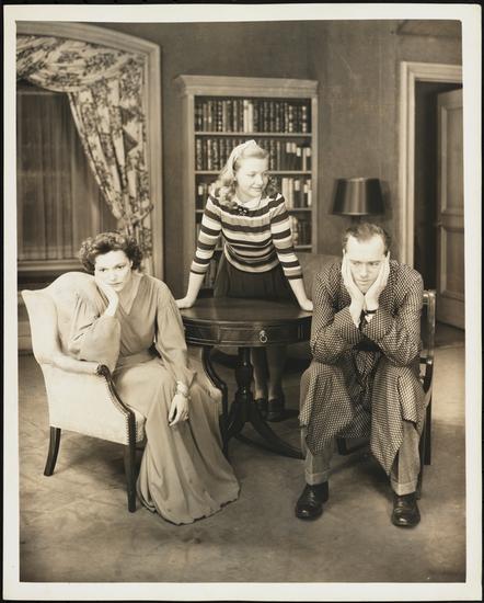 [Paula Laurence as Hilda, Patricia Peardon as Judy Graves and Alexander Kirkland as Willis Reynolds in "Junior Miss".]