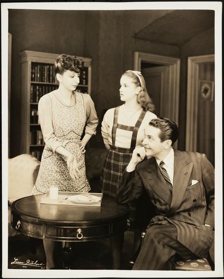 [Francesca Bruning as Ellen Curtis, Alexander Kirkland as Willis Reynolds and Patricia Peardon as Judy Graves in "Junior Miss".]