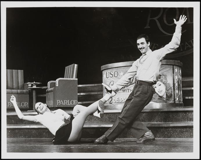 [Ann Reinking as Maggie and John Mineo as Lucky in "Over Here!".]