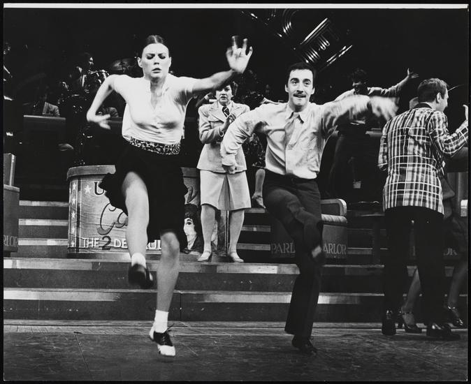 [Ann Reinking as Maggie and John Mineo as Lucky in "Over Here!".]