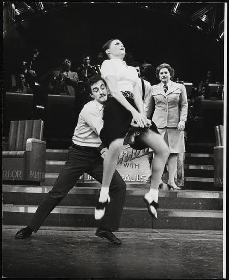 [Ann Reinking as Maggie and John Mineo as Lucky in "Over Here!".]