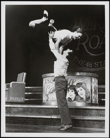 [Ann Reinking as Maggie and John Mineo as Lucky in "Over Here!".]
