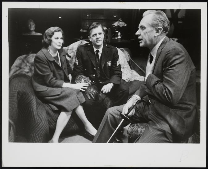 [Eli Wallach as Gregory Solomon, Debra Mooney as Esther Franz and Hector Elizondo as Victor Franz in "The Price".]