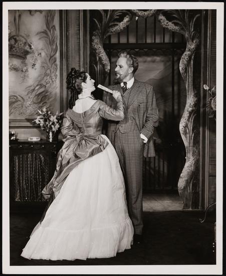 [Alfred Lunt as Axel Diensen and Lynn Fontanne as The Marchioness of Heronden (Serena) in Act 3, Scene 2 of "Quadrille".]