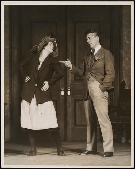 [Frieda Inescort as Eliza Doolittle and Dudley Digges as Alfred Doolittle on tour for "Pygmalion".]