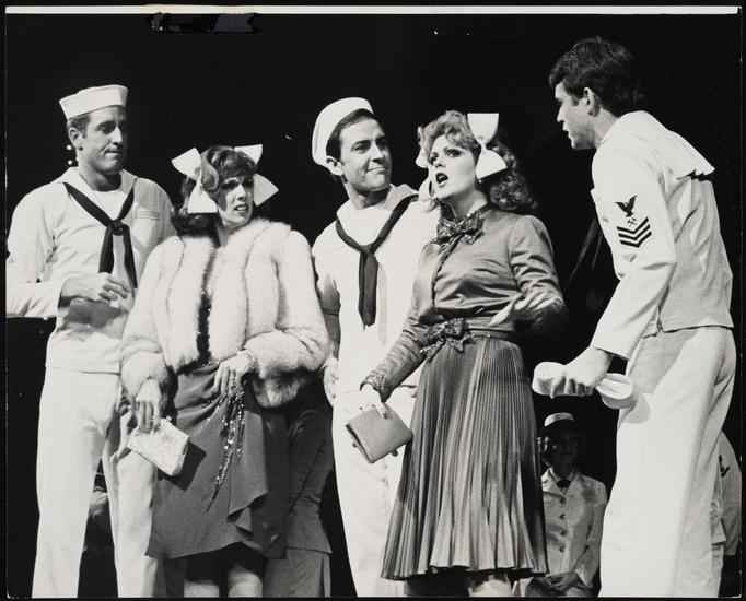 [Ron Husmann as Gabey, Phyllis Newman as Claire DeLoone, Bernadette Peters as Hildy Esterhazy and Jess Richards as Chip in "On the Town".]