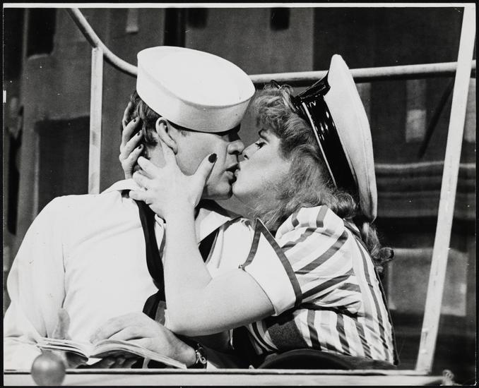 [Jess Richards as Chip and Bernadette Peters as Hildy Esterhazy in "On the Town".]