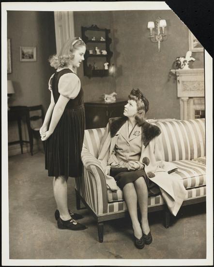 [Patricia Peardon as Judy Graves and Francesca Bruning as Ellen Curtis in "Junior Miss".]
