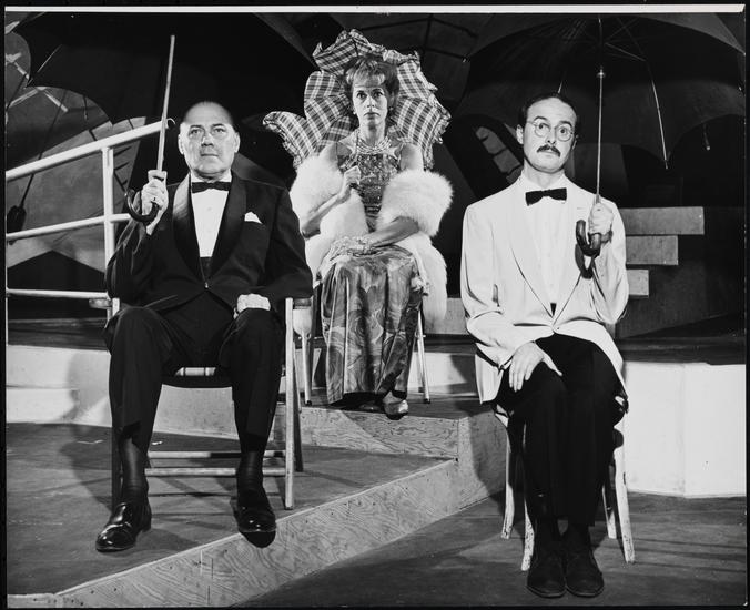 [Ramon Bieri as Alfred Morgan and Philip Bruns as the title role in "Mr. Simian".]