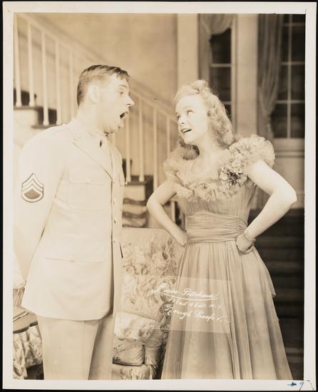 [Johnny Morgan as Sgt. Moroney and Claire Meade as Harriet Spinner in "What's Up".]