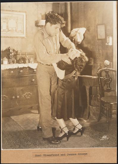 [Muni Wisenfrend as Benny Horowitz and Bella Finkle as Bertha in "Four Walls".]