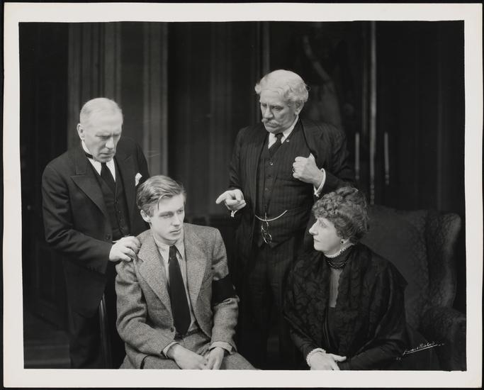 [Stephen Haggard as Finch, Wyrley Birch as Uncle Ernest, Ethel Barrymore as Adeline and Reynolds Denniston as Uncle Nicolas in "Whiteoaks".]