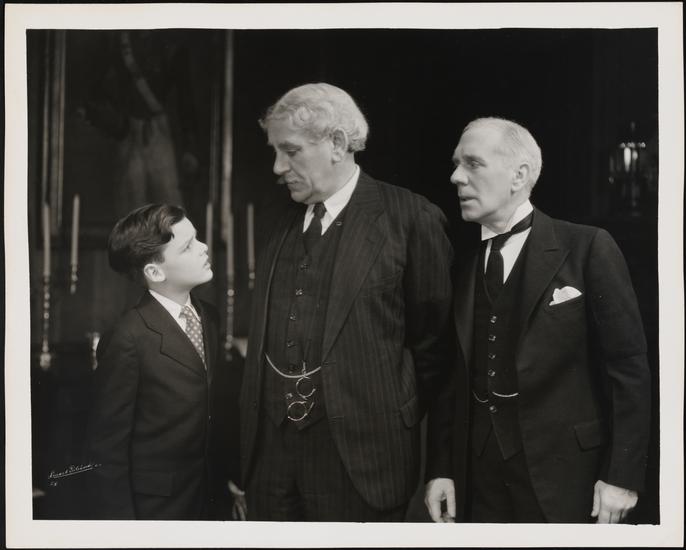 [Peter Fernandez as Wakefield, Robert Shayne as Renny, and Alan Hale as Piers in "Whiteoaks".]