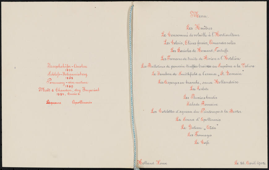 [Holland House dinner menu.]