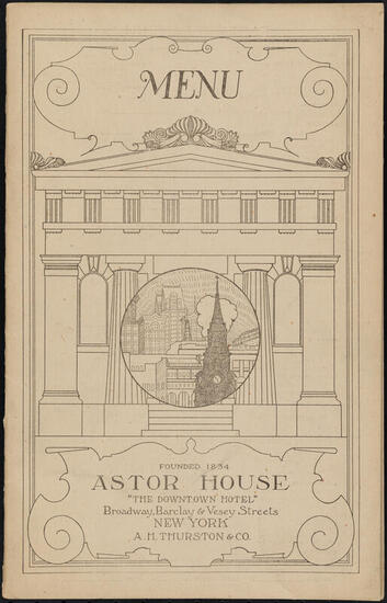 The Menu and Wine List of Wednesday, August 15, 1838 [Astor House] Is Reproduced Herein Through Courtesy of Hotel Waldorf Astoria