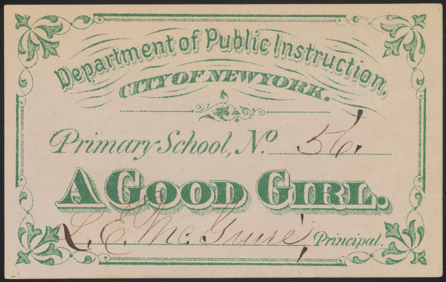 [Testimonial to punctuality, deportment and diligent attention to study.]
