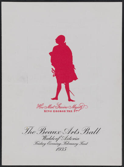 February 1, 1935. The period of the ball will be that of the Regency England, 1810. At midnight will be presented a spectacle, "George III Regrets".