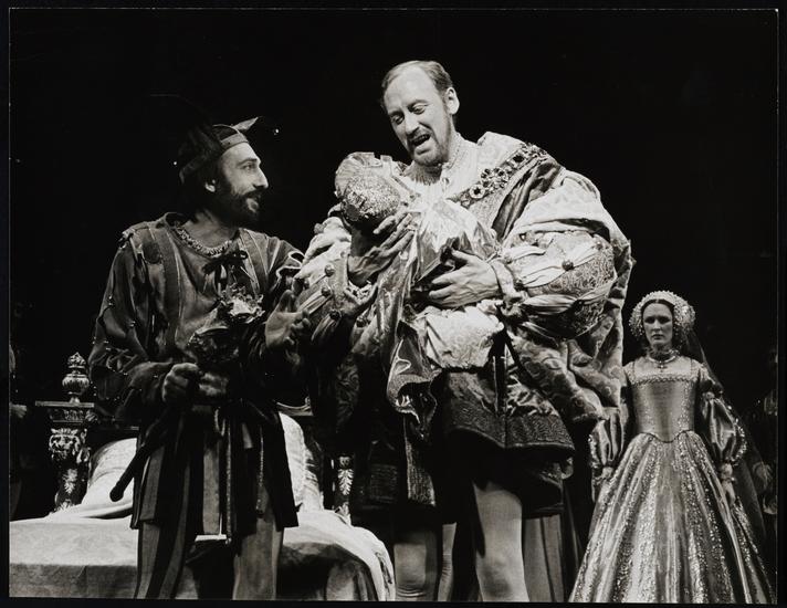 [April Shawhan as Lady Jane Seymour and Nicol Williamson as Henry VIII, King of England in "Rex".]