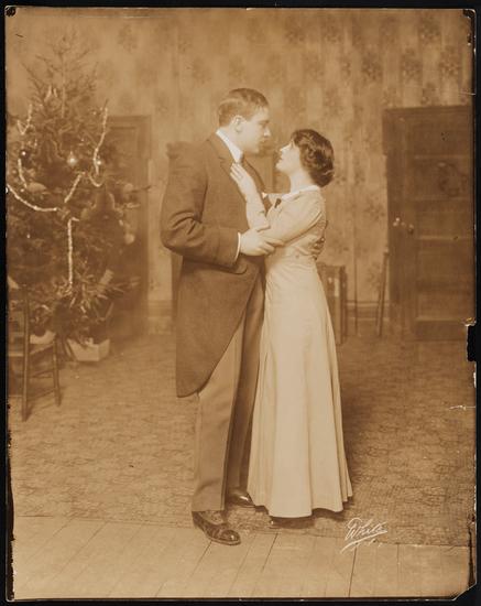 [Florine Arnold as Mrs. Hennaberry and George Paige in an unidentified role in "The Things That Count".]