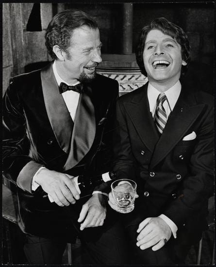 [Donal Donnelly as Milo Tindle and Michael Allinson as Andrew Wyke in a touring company of "Sleuth".]