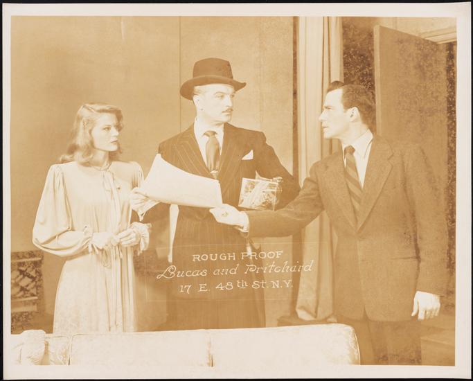 [Tom Rutherfurd as Shelby Carpenter, K. T. Stevens as A Girl and John Loder as Waldo Lydecker in "Laura".]