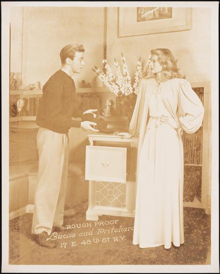 [Tom Rutherfurd as Shelby Carpenter and K. T. Stevens as A Girl in "Laura".]
