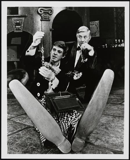 [Paul Rogers as Andrew Wyke and Keith Baxter as Milo Tindle in "Sleuth".]