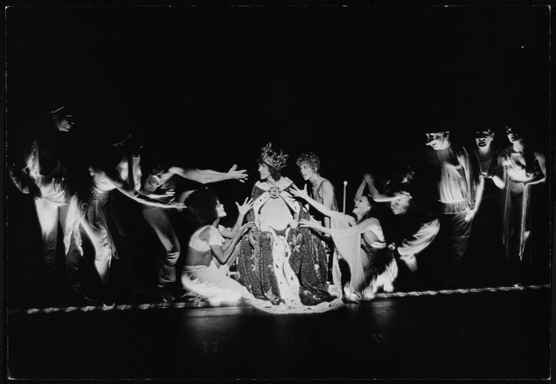[Irene Ryan as Berthe and John Rubinstein in the title role of "Pippin".]