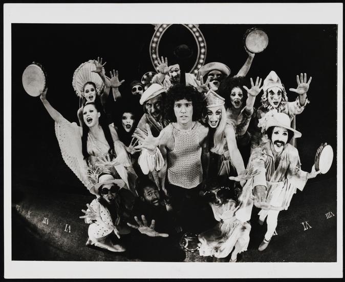 [Ben Vereen as the Leading Player and John Rubinstein in the title role of "Pippin".]