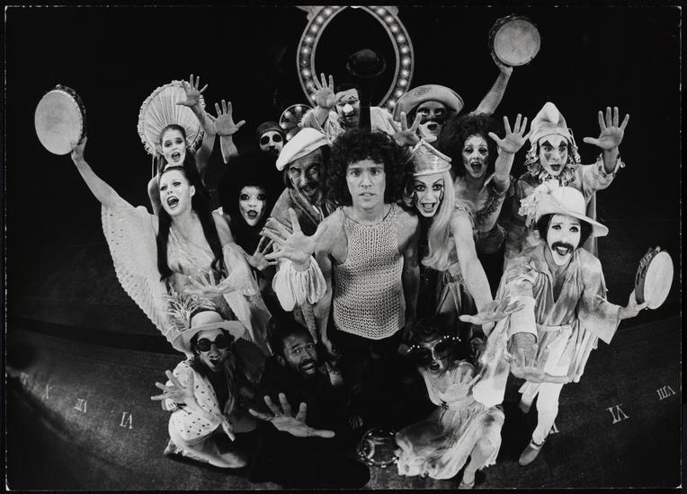 [Ben Vereen as the Leading Player and John Rubinstein in the title role of "Pippin".]