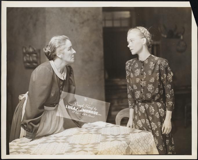 [Priscilla Newton as Naomi deMeer and Ethel Barrymore as Ouma Gerart in "Farm of Three Echoes".]