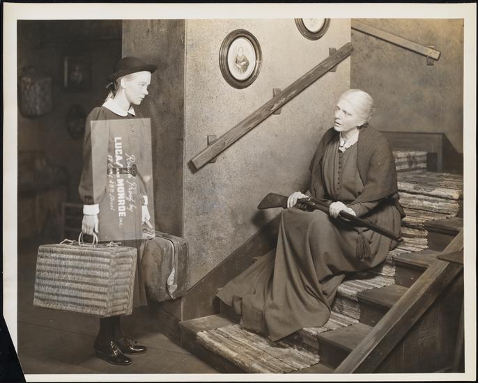 [Priscilla Newton as Naomi deMeer and Ethel Barrymore as Ouma Gerart in "Farm of Three Echoes".]