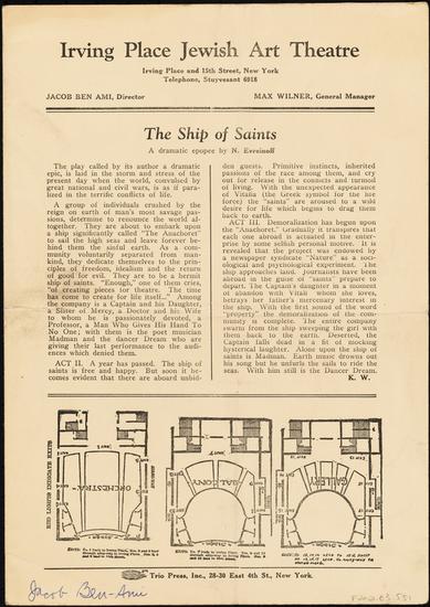 [Jacob Ben-Ami rehearsing with the cast of "The Ship of Saints".]