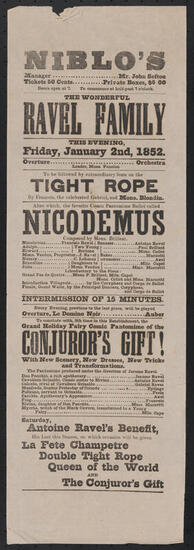 The wonderful Ravel family, "Nicodemus" and "Raoul; or, The Magic Star", Friday, October 10, 1851
