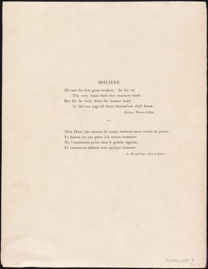In Honor of the Three-Hundredth Anniversary of the Birth of Molière